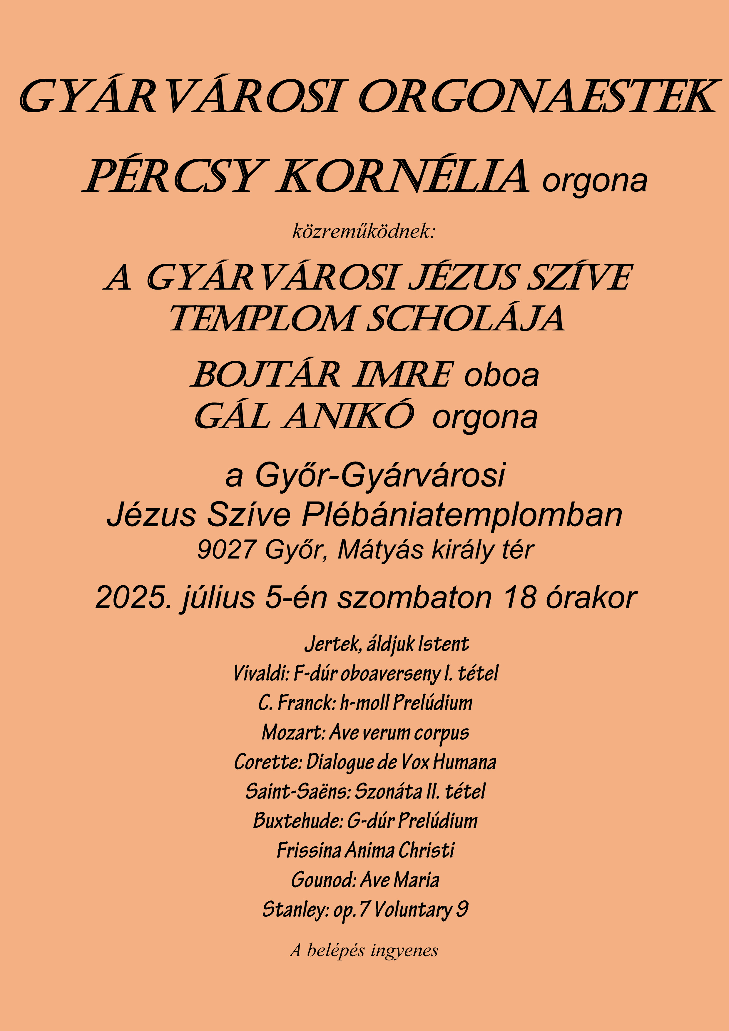 Bach: Hegedű-oboa kettősverseny, Gyermán István - hegedű 1973 Székesfehérvár, 1982 Komárom, Győr, Vándor Ferenc - hegedű, 1992 Győr- Laczó István-hegedű, 1998 Győr Reményi Gyöngyi-hegedű, 2009 Pannonhalma Buzássy Diána-hegedű
