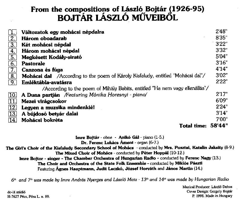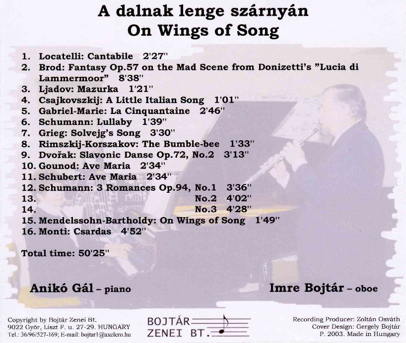 Imre Bojtár-oboe, Anikó Gál-klavier
